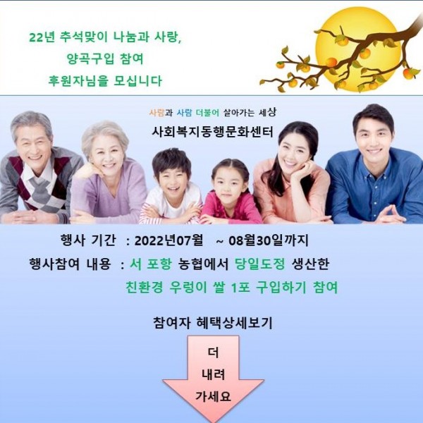 22년추석맞이 나눔과 사랑,양곡구입 참여후원자모집